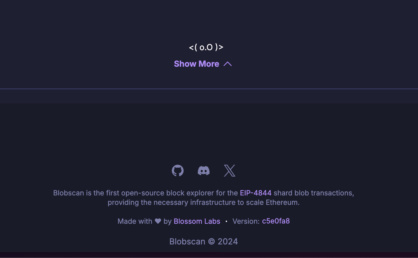 If you want to view the decoded ASCII art, you can leverage another explorer, Blobscan. In the "Data" section, select UTF-8 under the "View as" dropdown, then scroll all the way down to view the little guy.